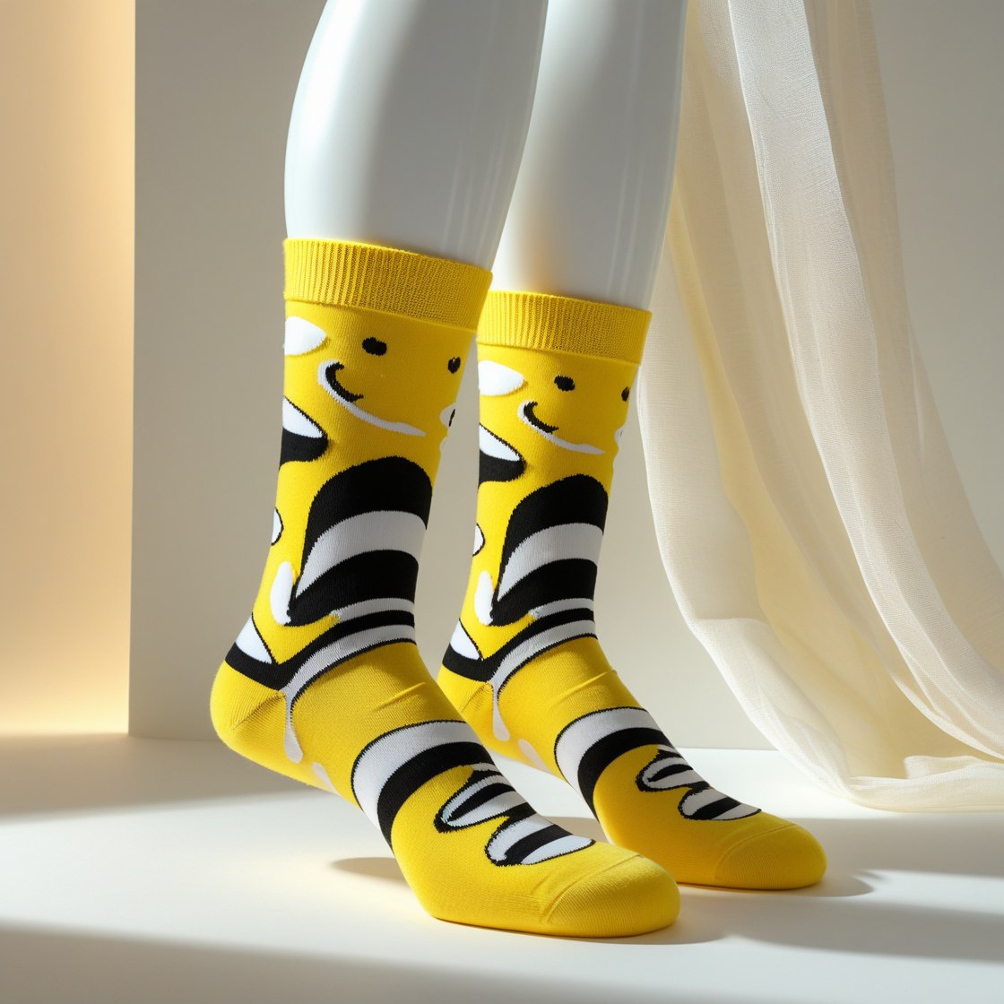 The Premium Pack is the full collection of color, character, and comfort. It includes all pairs from the Plus Pack (9 pairs) plus three extras: red guitars on grey, cactus and mushroom combo on navy, and cheerful yellow bees. Every pair adds a new twist to your day, whether playful or bold. With an oversize unisex fit, this pack suits anyone looking for everyday comfort with a spark. Maximum socks, no complications.